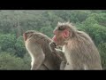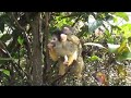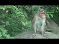 This clip shows monkeys collecting and breaking nuts. They leave them for a certain period and return to complete the food preparation process. This entire process displays long-term planning as well as tool use.