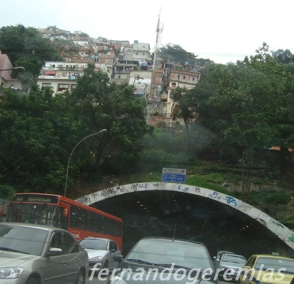 12 – Do outro lado… Favela em cima, pichações e um grande fluxo de veículos…