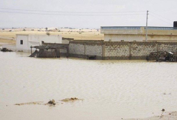The town of Al-Arish in North Sinai remains flooded, with four neighborhoods immersed in water.
