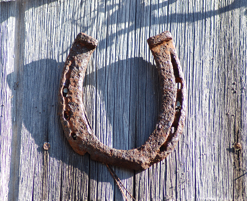 Many cultures consider horseshoes to be a good luck charm and their placement and shape are very important. A horseshoe is hung on a door with the ends pointing up as to have them pointing down brings bad luck. The idea behind this is that the good fortune will spill out if it is facing down. Some people also believe that you must find a horseshoe that has been lost by a horse for it to be lucky. A few traditions dictate that any luck – either good or bad– will only affect the owner/finder of the horseshoe and not simply the person who hangs it up. Some people believe that guests must enter and leave a house under the same door with the horseshoe hung over it in order to take the luck with them.