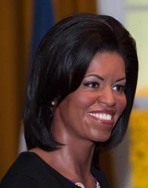 I saw this over at FlyStyleLife and I had to share it with my fellow MOWatchers. Madame Tussaud has unveiled a new waxwork of First Lady Michelle Obama in London. While I don’t agree with Mecca Donna that the image is “spot on”. I will say that it is better than that awful Danbury Mint doll thing. But what’s up with the President’s hair? I guess if people keep trying one day someone will get the images just right. I hope.
