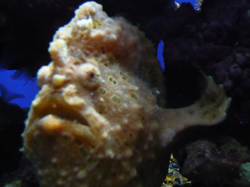 Brown and grey in colour, the stone fish can grow from 35 cm in length, up to 50 cm, and they live on coral bottoms. They can dig into the sandy bottoms with their fins too, where they live nicely camouflaged while keeping a wary eye out for prey.