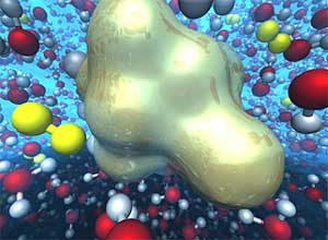According to Science News, “Some regions of the superatom were hungry for electrons, while other regions wanted to give electrons away, the researchers found. As these sites began interacting with the surrounding water molecules, hydrogen atoms swiftly jumped from one oxygen partner to another, ultimately ending up on the aluminum superatom. After another series of complicated hydrogen bond switching events, a hydrogen atom then left the aluminum to join another hydrogen atom. The two hydrogen singletons were produced strategically close to one another, easing their ability to find each other and form a stable two-hydrogen molecule.”