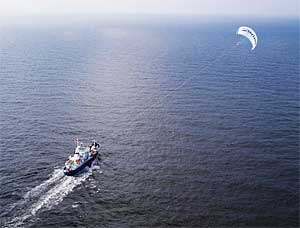 High Altitude Korean Kite Tied to Ship to Create Hydrogen At Sea