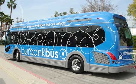 But, now many years later, Burbank is cleaning up its image by enlisting the help of two hydrogen fuel cell zero emissions transit buses. The buses are made by Proterra and contain both a fuel cell and a bank of lithium titanate batteries, making them hybrid buses.
