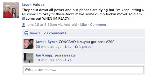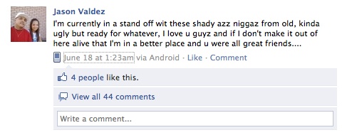 During the course of the standoff, Valdez made a series of Facebook posts giving friends and family the live play-by-play of the whole event.