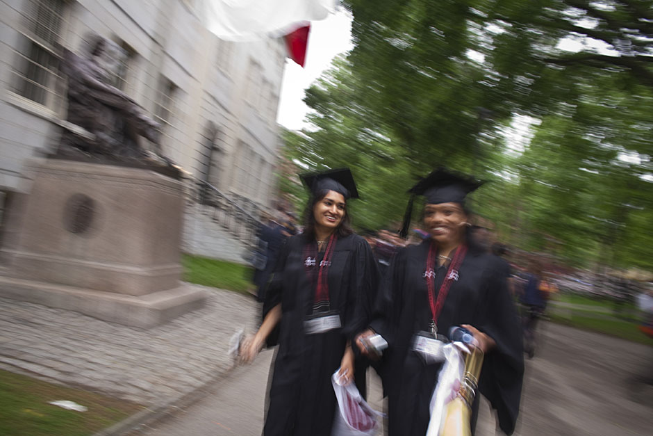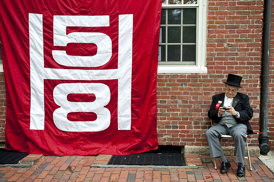 When I was younger I used to hear Harvard stories from a member of the class of 1885. Back then, old graduates of the College who could get to Cambridge on Commencement Day didn’t wait for reunion years to come back to the Yard. They’d just turn up, see old friends, look over the new crop, and have a cup of Commencement punch under the elms. The old man remembered one of those summer days when he was heading for the Square after lunch and crossed paths with a newly graduated senior, who had enjoyed quite a few cups of that punch. As the two men approached each other the younger one thrust out his new diploma and shouted, “Educated, by God.”